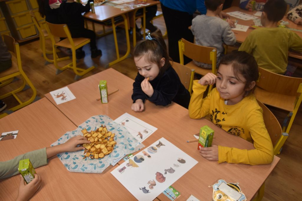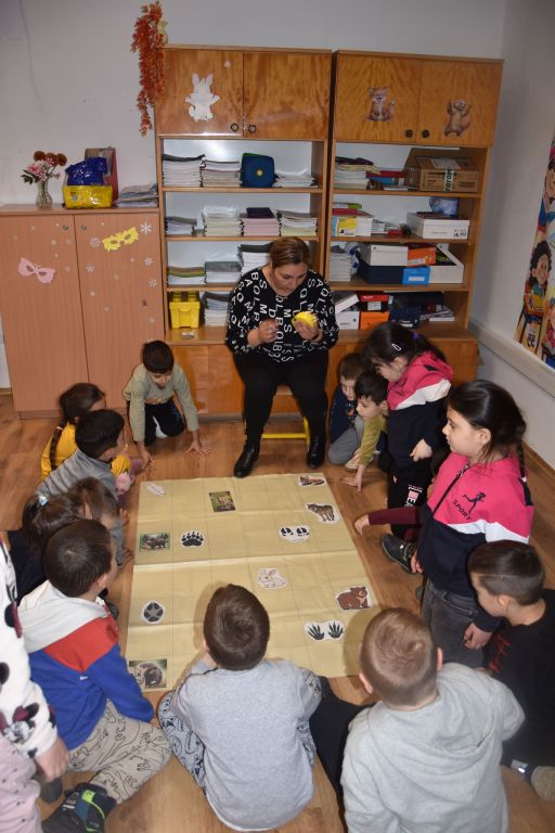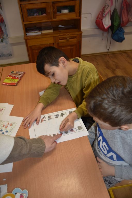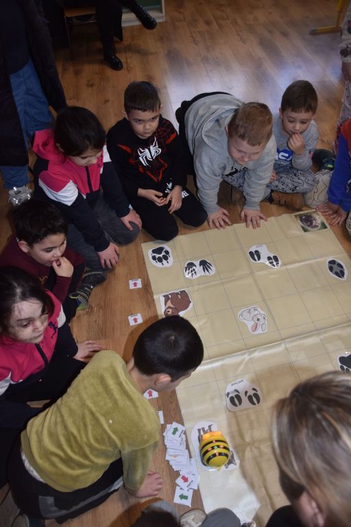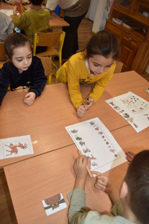 A mese feldolgozását játékos feladatok követték. A nagy sikert aratott memóriajáték a figyelmük mellett az emlékezetüket is próbára tette. A hangfelismerő játék során a gyerekek lelkesen találgatták, vajon melyik állat hangját hallják éppen. A foglalkozás első részét egy rövid, életkoruknak megfelelő feladatlap zárta, ahol és összekötős feladatokkal mélyíthették el az élményeiket.