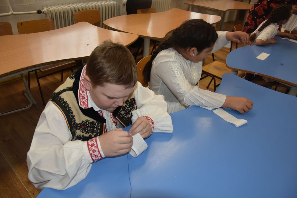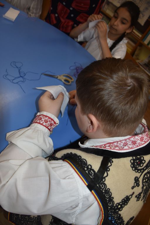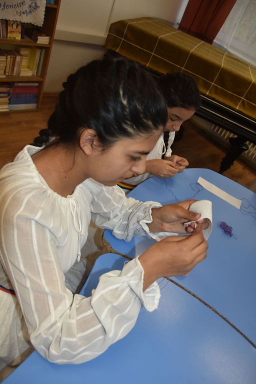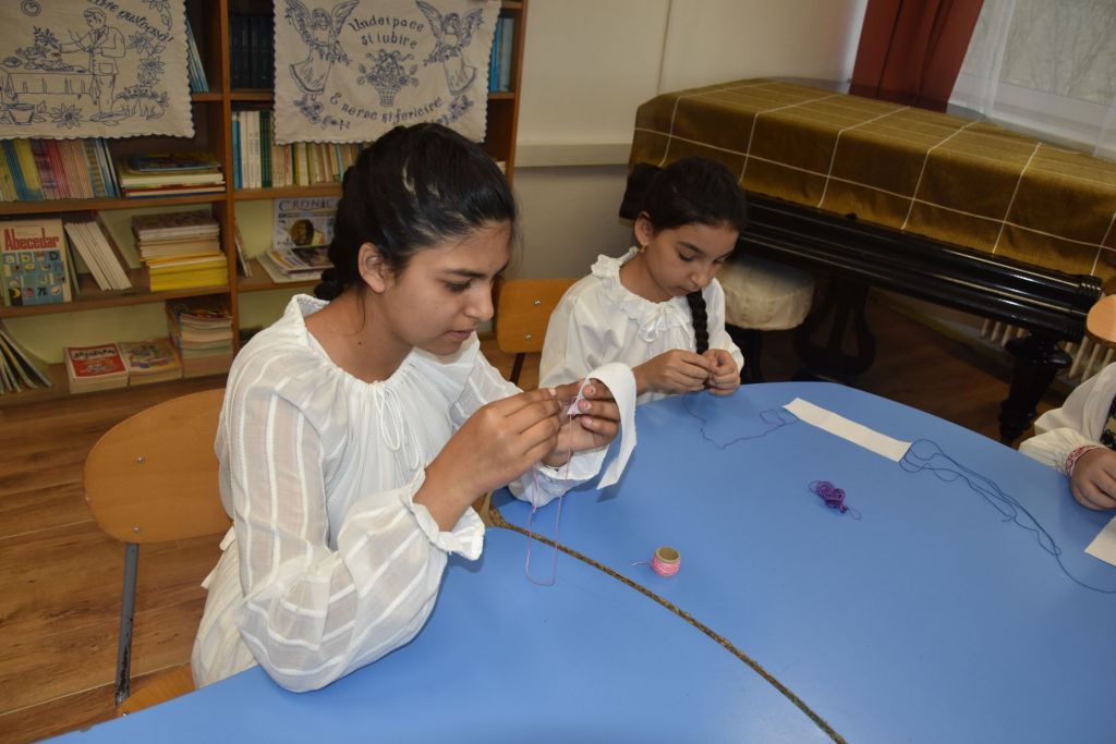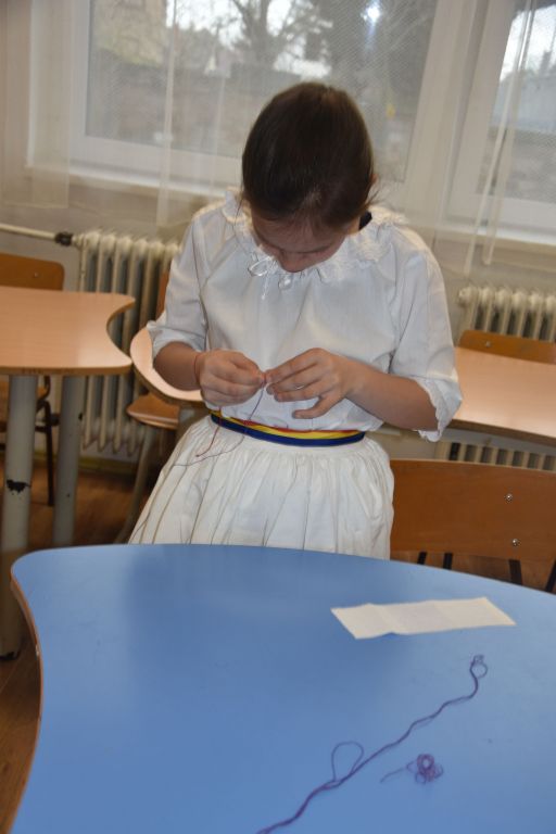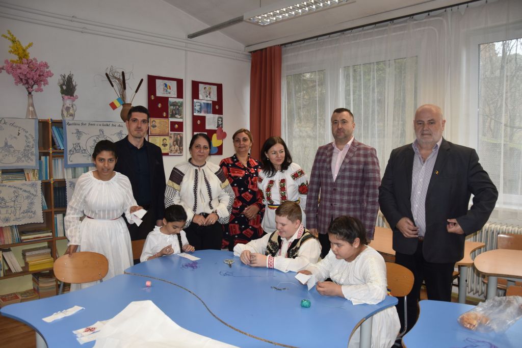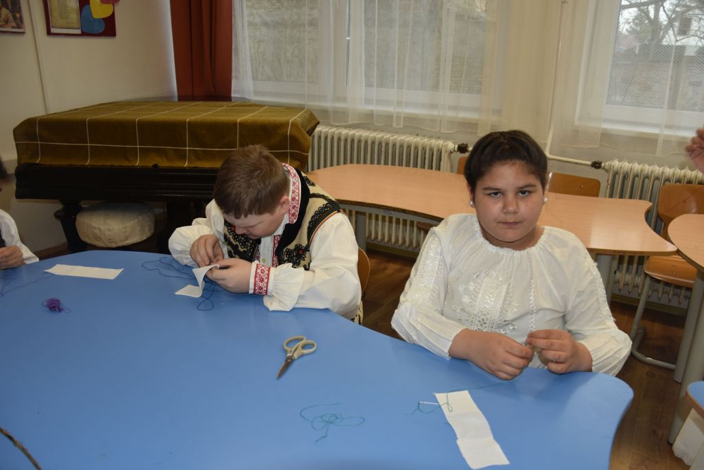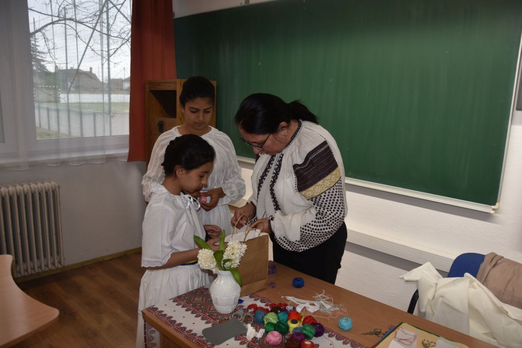 A látogatás során vendégeink betekintést nyertek iskolánk mindennapjaiba, és találkoztak a nemzetiségi programokban részt vevő tanulókkal is. Különösen nagy érdeklődés övezte Anca Becan kézműves foglalkozását, aki a román hagyományőrző szakkör tagjai számára mutatta be a román népművészet gazdag motívumvilágát. A gyerekek megismerkedhettek azokkal a jellegzetes mintákkal és szimbólumokkal, amelyek a hímzésben és varrásban jelennek meg, s amelyek generációról generációra öröklődnek.
