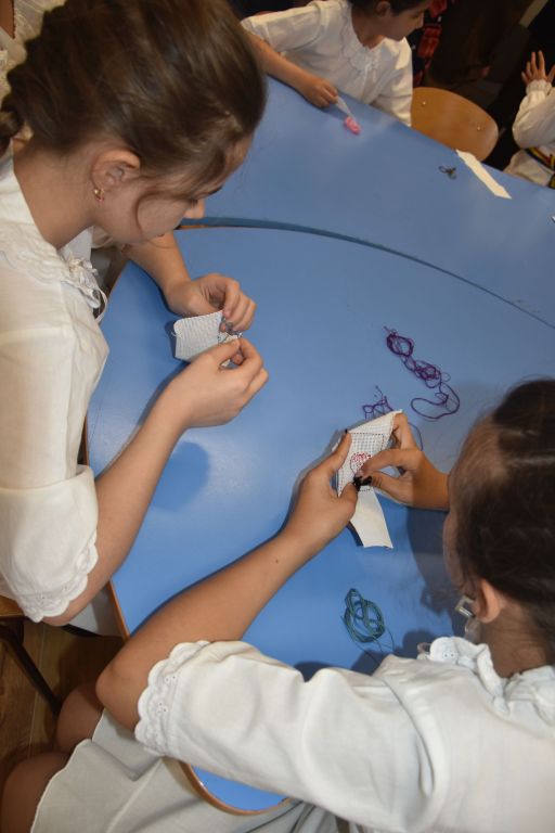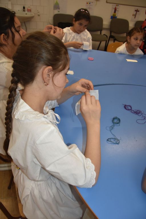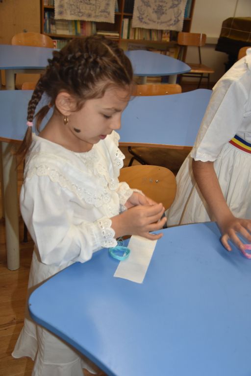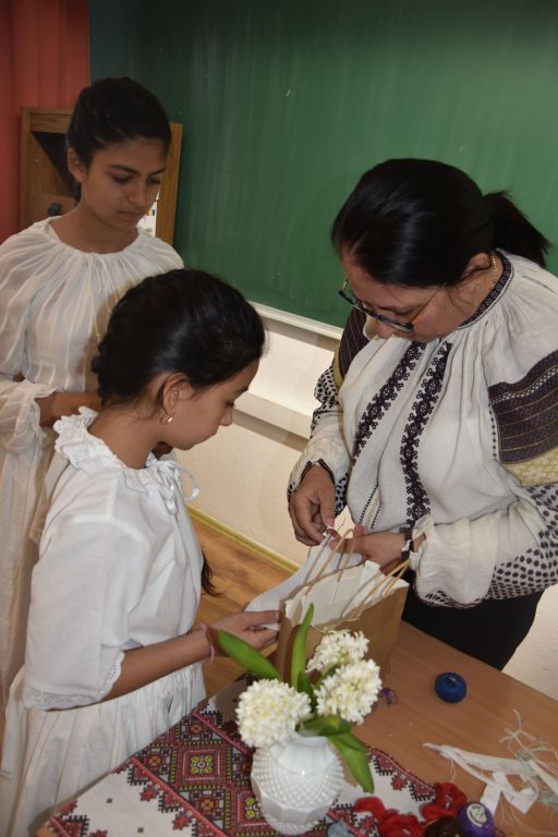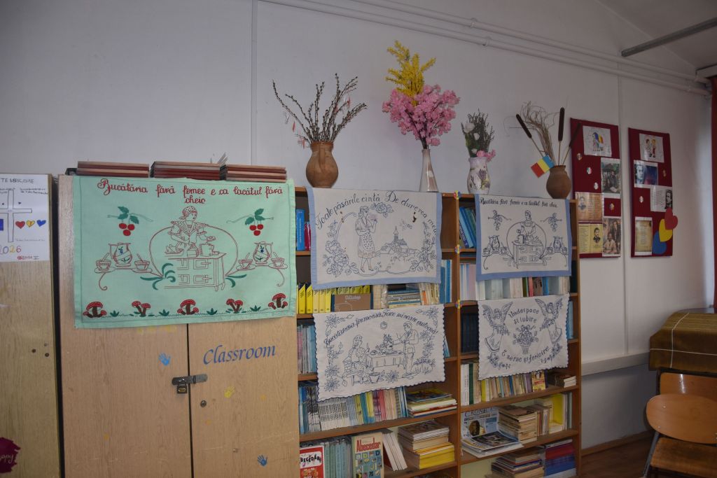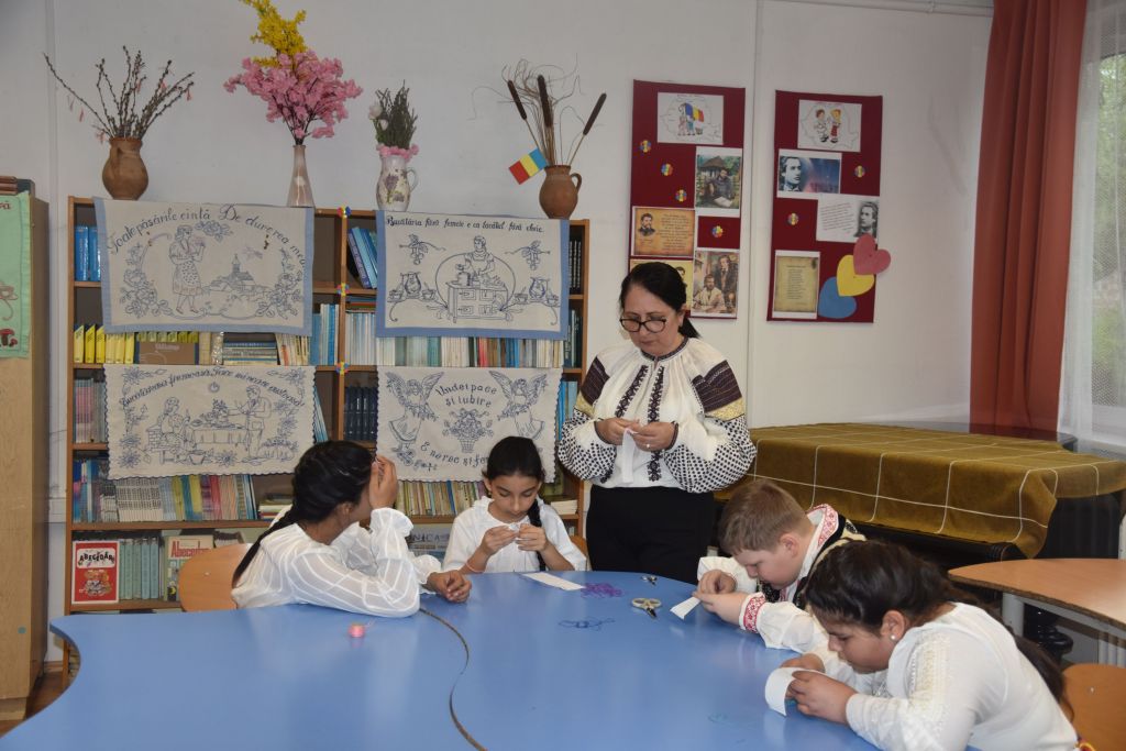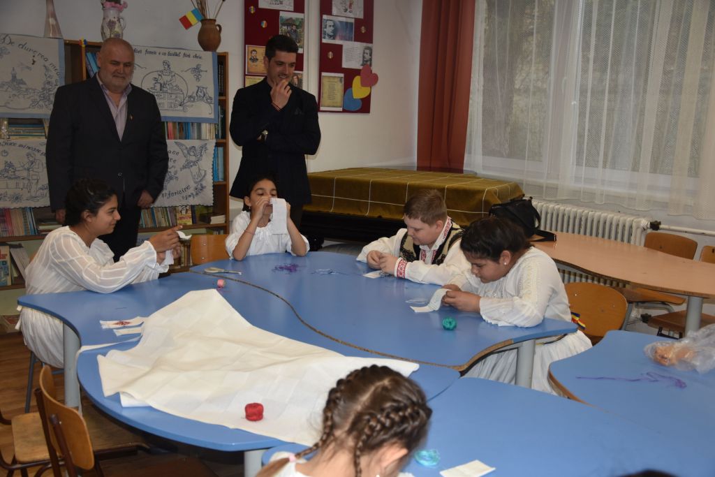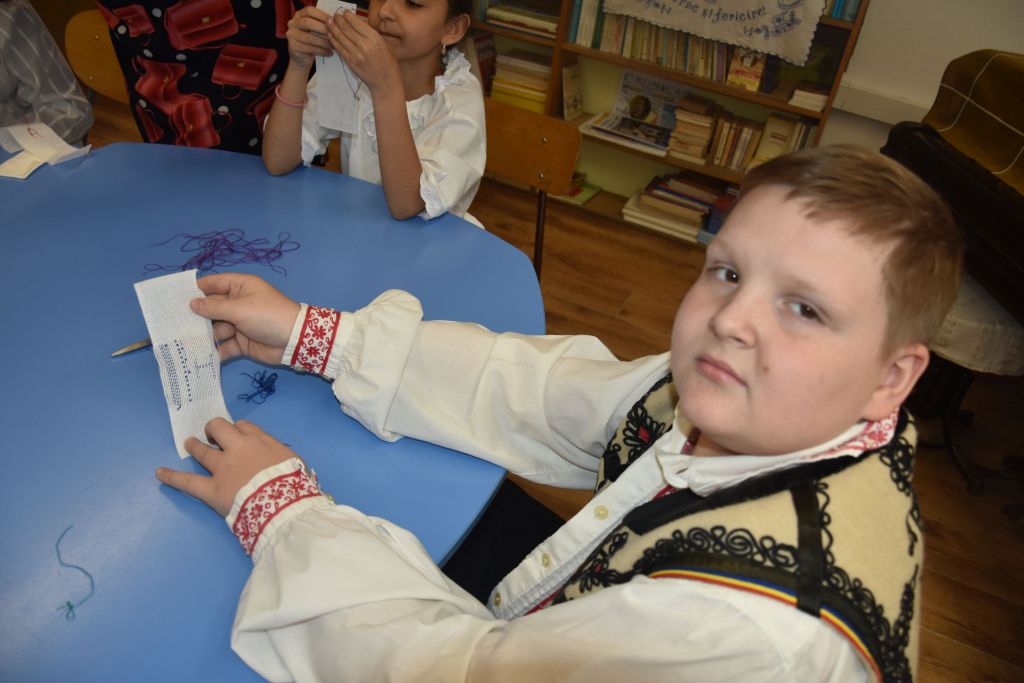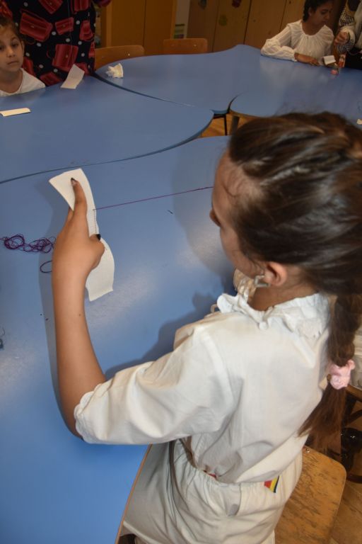 A látogatás során vendégeink betekintést nyertek iskolánk mindennapjaiba, és találkoztak a nemzetiségi programokban részt vevő tanulókkal is. Különösen nagy érdeklődés övezte Anca Becan kézműves foglalkozását, aki a román hagyományőrző szakkör tagjai számára mutatta be a román népművészet gazdag motívumvilágát. A gyerekek megismerkedhettek azokkal a jellegzetes mintákkal és szimbólumokkal, amelyek a hímzésben és varrásban jelennek meg, s amelyek generációról generációra öröklődnek.
