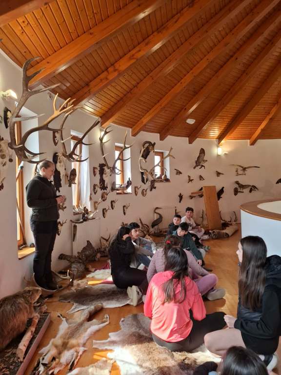 A nap nyitányaként egy vadászati alapismereti foglalkozáson vehettünk részt, amely során a tanulók betekintést nyerhettek az erdei élővilág sokszínűségébe, valamint a felelős természetgazdálkodás alapelveibe. A természet közelsége nemcsak ismeretszerzésre adott alkalmat, hanem arra is, hogy a diákok közvetlen tapasztalatokat szerezzenek: védett növényfajokat figyelhettünk meg eredeti élőhelyükön. A magyarázatokat figyelemmel és érdeklődéssel követték, sokak számára mindez új és különleges élményt jelentett.