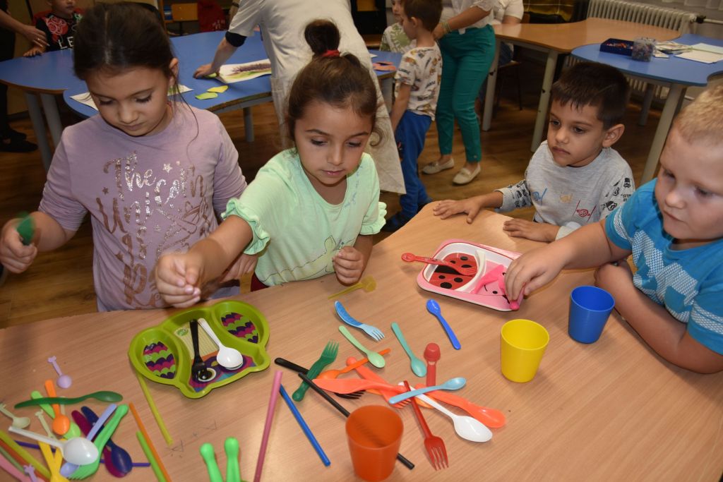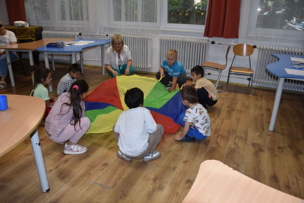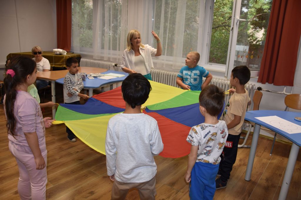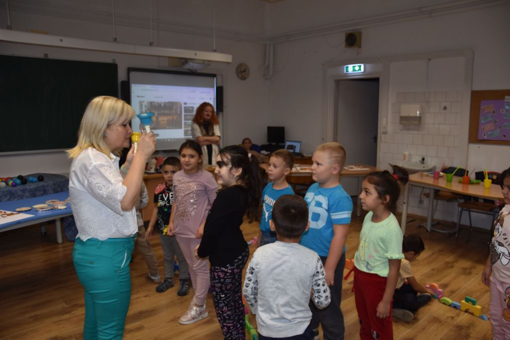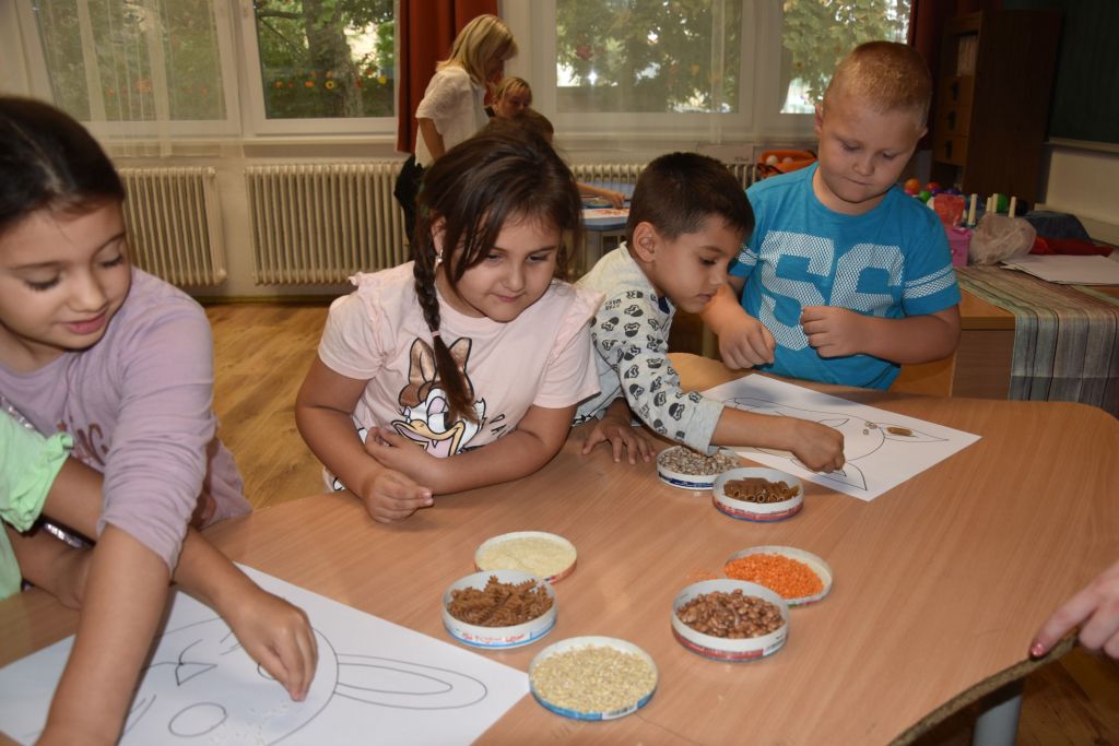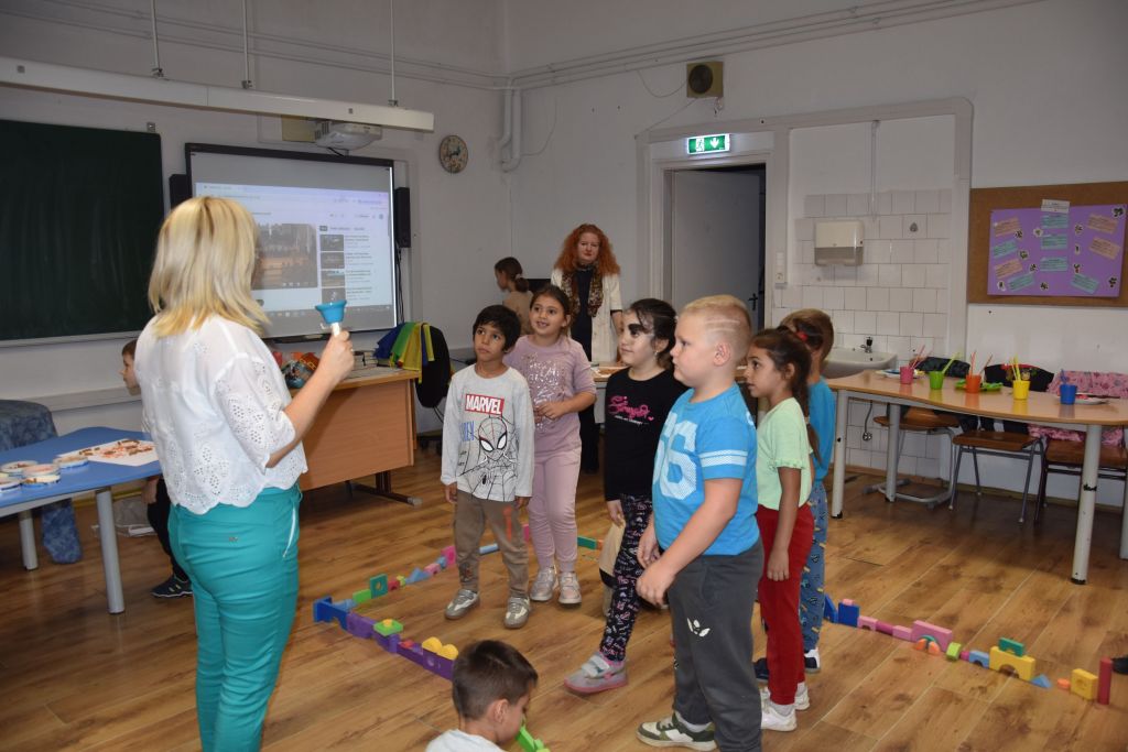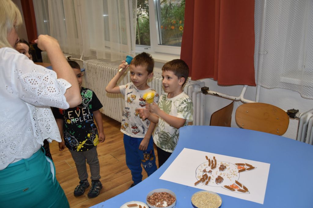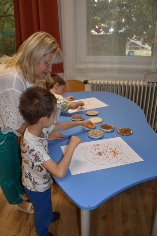 Szeptember 25-én került megrendezésre az idei tanév első SULIVÁRÓ délutánja Dallamok és színek címmel. Mint ahogy az elnevezése is mutatja, Krátky Beáta tanárnő a dallamok világába kalauzolta el az óvodásokat, Kiss Adél tanárnő pedig színes, kreatív feladatokkal, játékokkal várta a kis csapatot. Egy vidám Süni-dallal kezdődött a délután, miközben a gyerekek különböző színű almákat pakoltak a sünik hátára. Mindeközben a másik csapatnak színes tányérokba és poharakba kellett párosítaniuk a műanyag evőeszközöket színek szerint. Ezután Bea néni varázsharangjait szólaltatták meg együtt a lelkes jelentkezők és énekelték a vidám gyermekdalokat. A következő asztalnál különböző termésekből, magokból, száraz tésztából ember és állatfejeket raktak ki az ügyes kezek. Egy másik asztalnál színes labdákat csoportosítottak az óvodások, miközben meg kellett találniuk a kakukktojást. A következő feladatuk önarckép rajzolása volt zsírkrétával, anélkül, hogy felemelték volna a krétát a papírról. A változatos feladatok után játékra is maradt idő. A színes építőelemekből várfalat épített az ovis csapat, ami körül,,kis katonák” meneteltek Kodály Zoltán zenéjére. A vidám délután hamar eltelt, a kis csapat nagyon jól érezte magát.