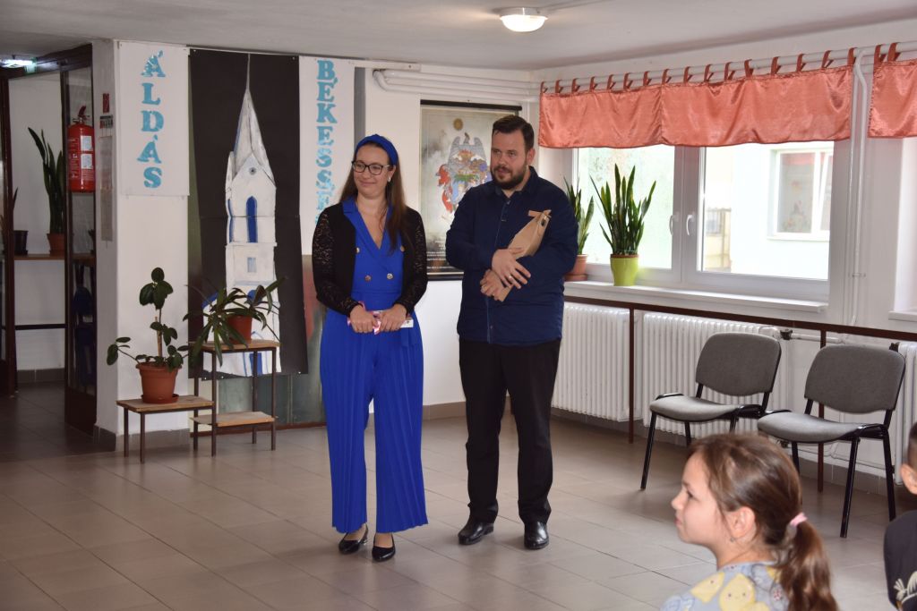 Október 1-én világszerte ünneplik a zenét, rengeteg koncertet, közösségi eseményt rendeznek ezen a napon. A mi iskolánkban is immár hagyománnyá vált, hogy különböző módon csendülnek fel a muzsika hangjai. Idén egy igazán különleges koncertnek lehettünk részesei, hiszen a Szegedi Nemzeti Színház énekművészei látogattak el hozzánk, Süli-Ijjas Noémi és Süli Tamás . Az interaktív műsor alatt megtudhatta a közönség, hogyan is kezdődött a művészek pályája, és azt is , milyen technikai tudás szükséges a magas szintű énekléshez. A műsorban elhangoztak népdalok, mesefilm dalok, musical részletek, operett duett, és opera ária is. Minden műsorszámmal egyre közelebb kerültek a közönség lelkéhez, mert ,,A zene az kell” a koncert végén méltó zárása volt a fantasztikus koncertnek. A közönség álló tapssal hálálta meg a művészek előadását, kicsik és nagyon sokáig emlegették a szívhez szóló élményt. Hálásan köszönjük Noéminek és Tamásnak, hogy megtisztelték iskolánkat, és sok szeretettel várjuk őket vissza rendezvényeinkre!